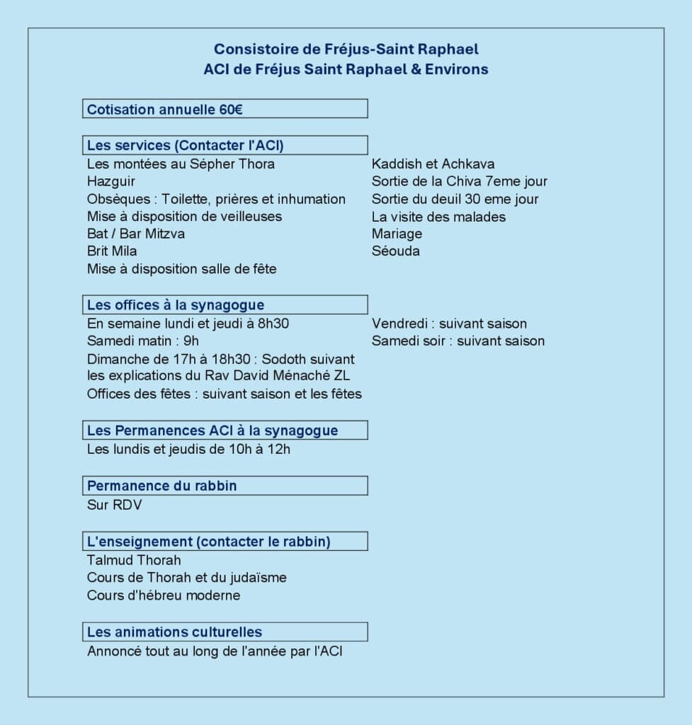• ACI Synagogue de Fréjus – Saint Raphael ACI Synagogue de Fréjus – Saint Raphael